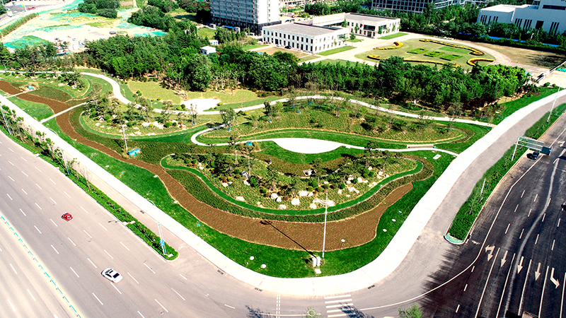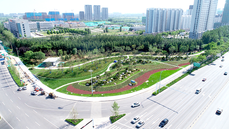该工程由潍坊高新区政府投资建设,合同造价2293万元,合同工期122日历天。合同内容包括给水雨水管网,景观绿化亮化,地形塑造,假山堆砌,景石安装,雕塑景墙,园路铺装,隔离护栏等,工程面积9.6万平方米。该项目以基于打造生态园林,城市门户的理念,以大开大合的设计手法,融合地域文化,构建易感知的潍坊东大门。
