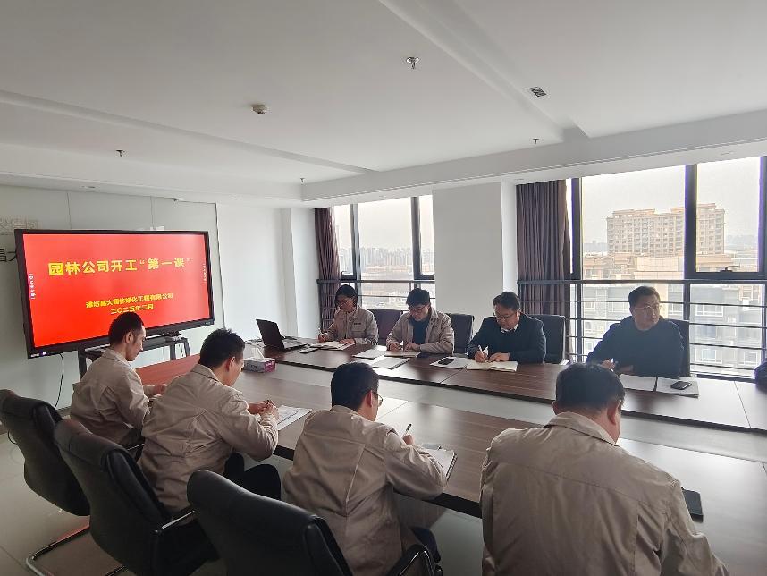 2025年2月21日下午,园林公司在公司会议室组织“开工第一课”活动。园林公司总经理、安全总监及全体员工参加活动。